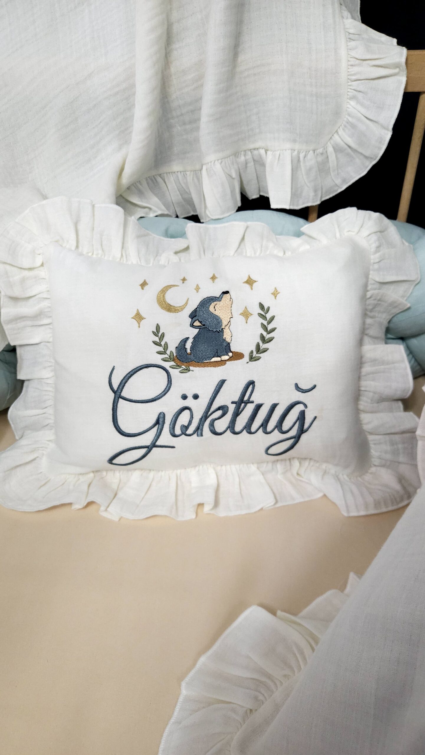 Müslin kumaş üzerine kişiye özel isim nakış işlemeli
