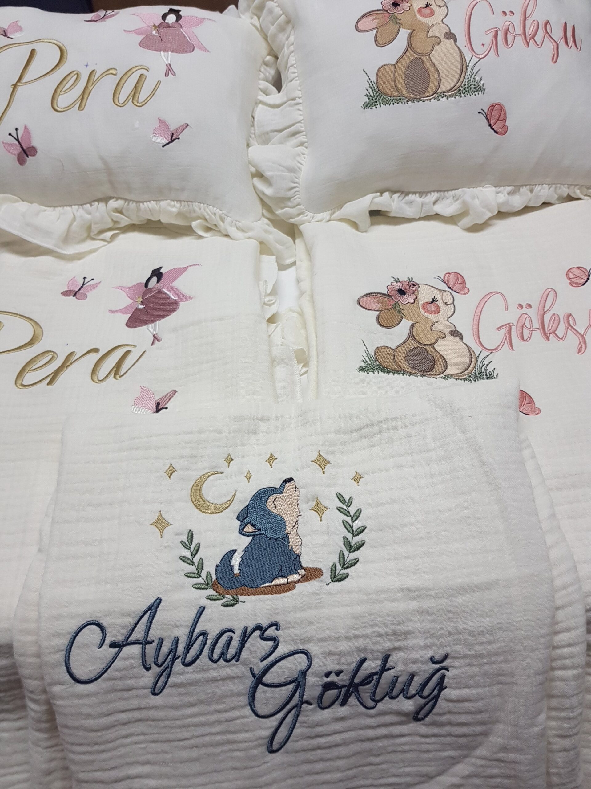 müslin kumaş kişiye özel isim nakışlı yenidoğan hastane çıkışı seti Eğer ürün türünü söylersen (kundak mı, battaniye mi, 10’lu set mi vs.), sana tam optimize edilmiş ve