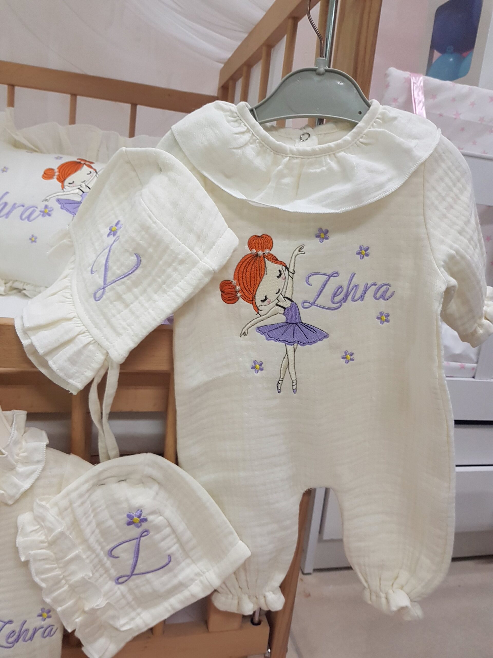 Nakış Detayı: Tulum üzerine bebeğinizin ismi zarif nakışla işlenir. Bu detay, seti özel ve kalıcı bir hatıraya dönüştürür.