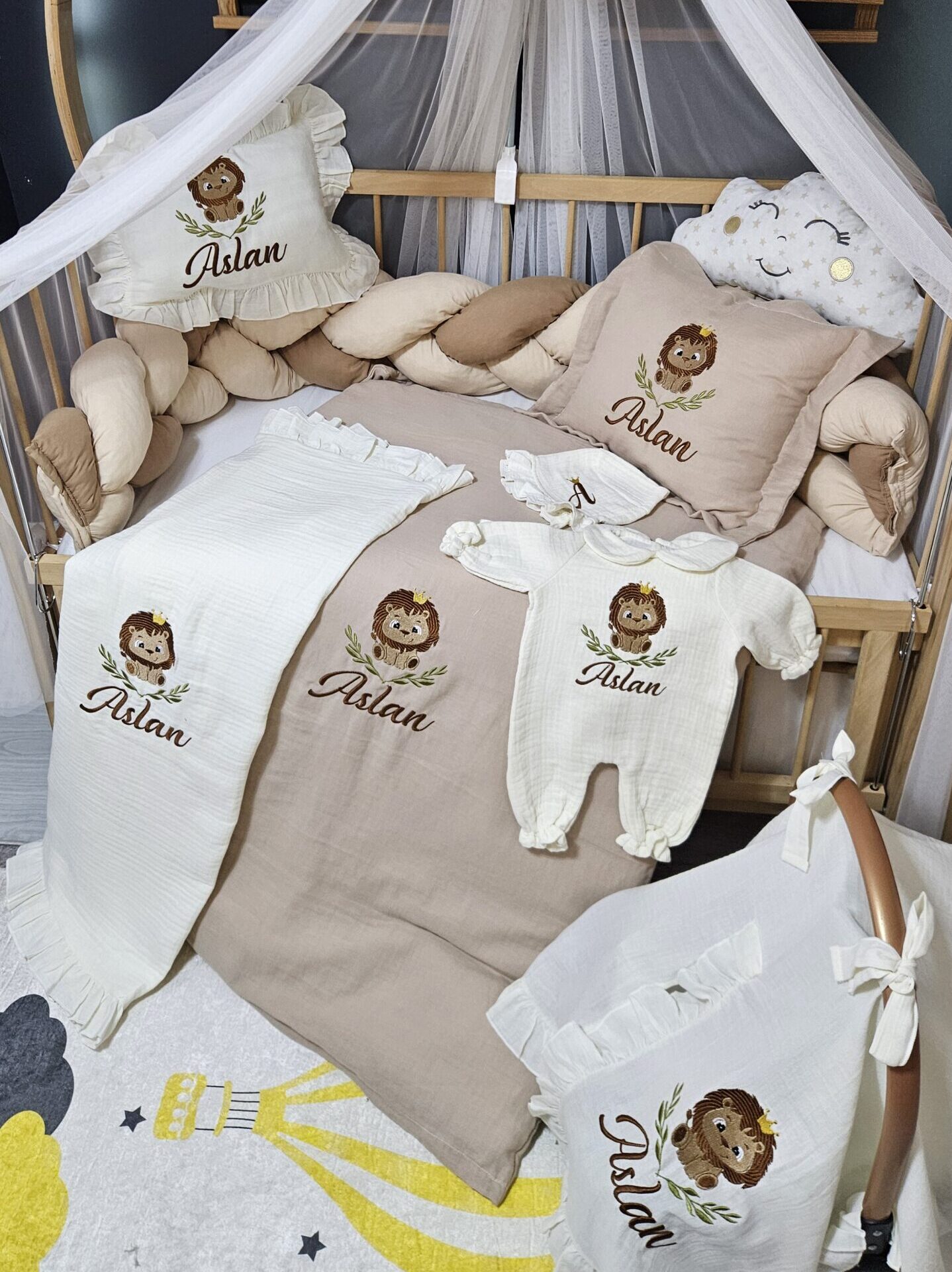 Müslin yenidoğan seti isim işlemeli