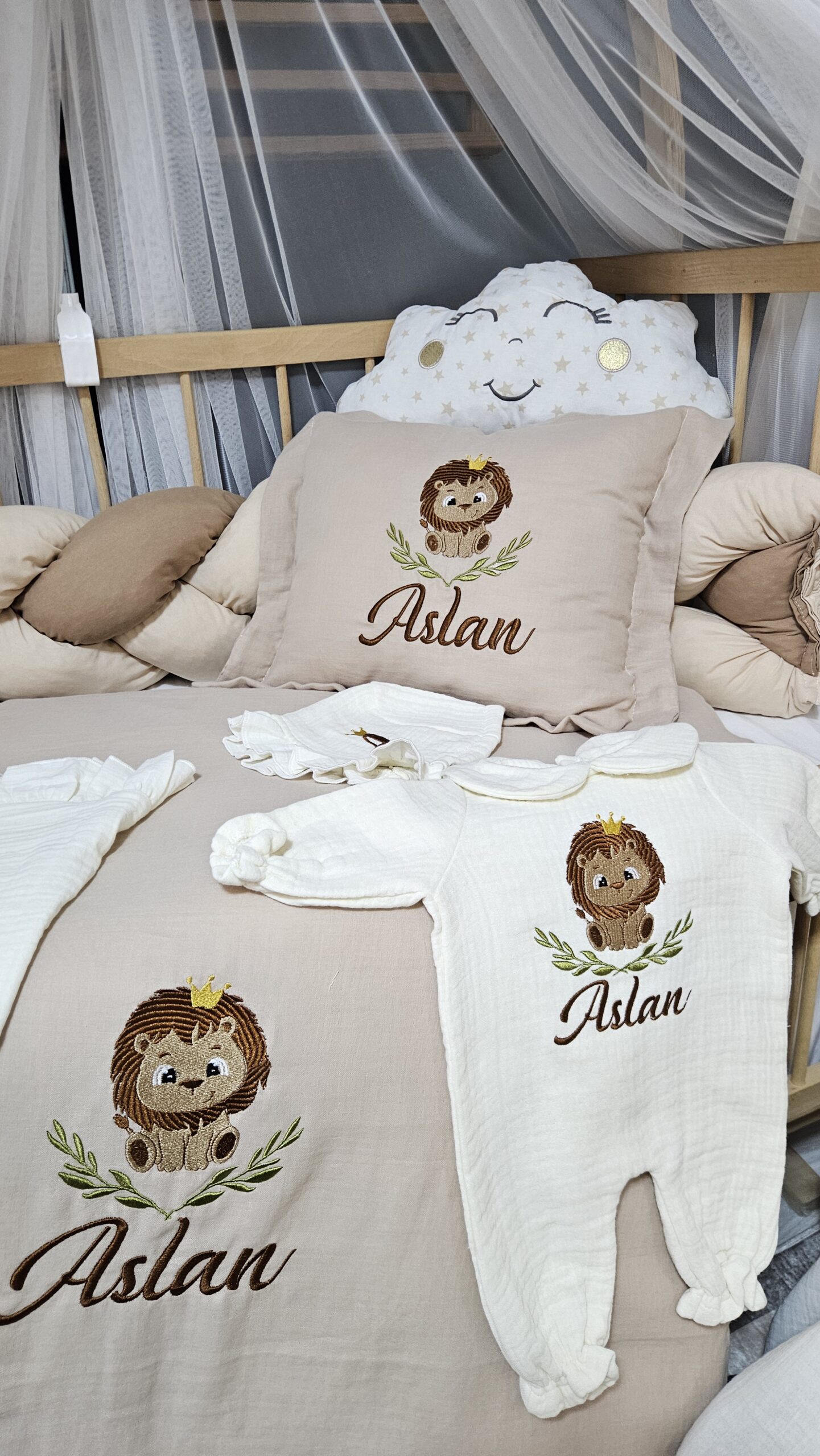 Müslin kumaş kişiye özel nakışlı hastane çıkışı