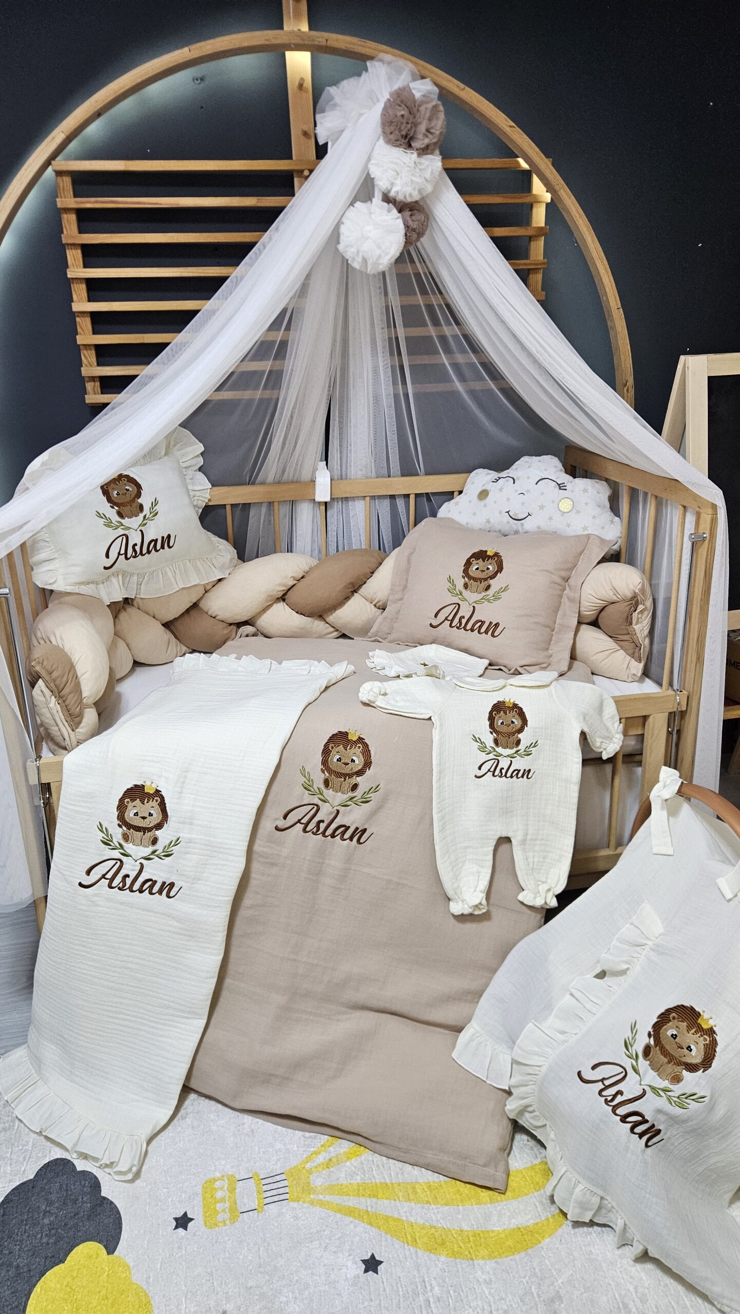 bebek odası dekoru, şeker yastık, beşik süs yastığı