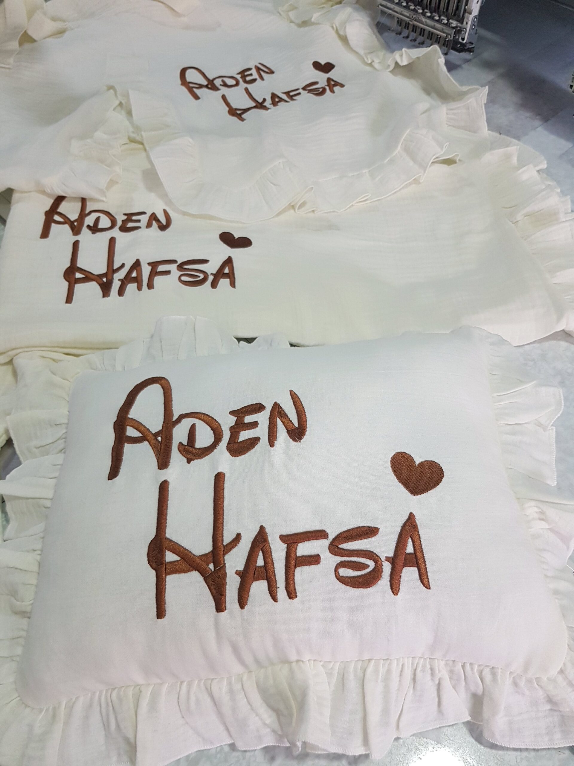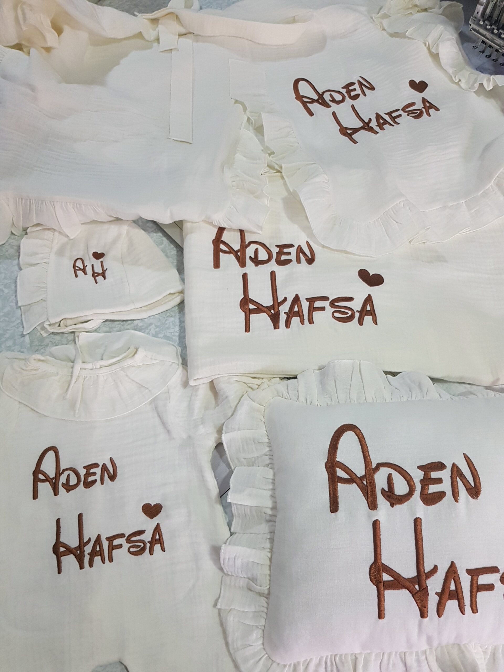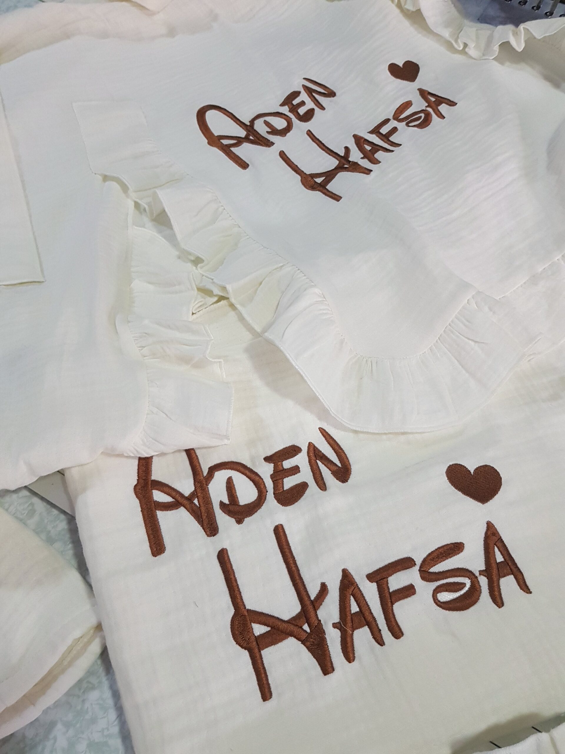 Kişiye özel isim nakışı ile anlamlı bir hatıraya dönüşen müslin hastane çıkışı, günlük kullanım ve özel günler için zarif bir hediye olarak tercih edilebilir.
