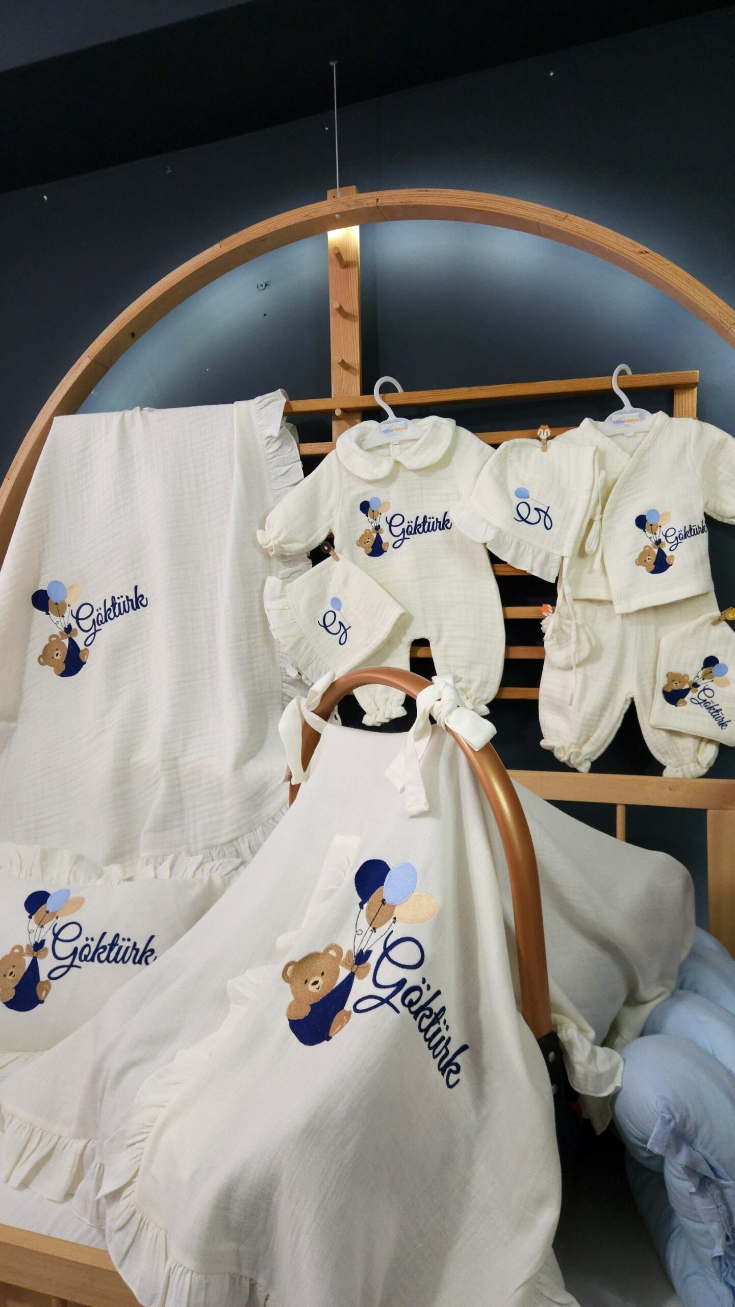 Baby Clime atölyesi olarak, yenidoğan bebeklerin ilk günlerini daha özel kılmak için %100 pamuklu, 4 katlı müslin kumaştan üretilen isim nakışlı hastane çıkışı setlerimizi özenle hazırlıyoruz. Yumuşak dokusu ve hafif yapısıyla bebeğinizin hassas cildiyle uyumlu bir kullanım sunar.