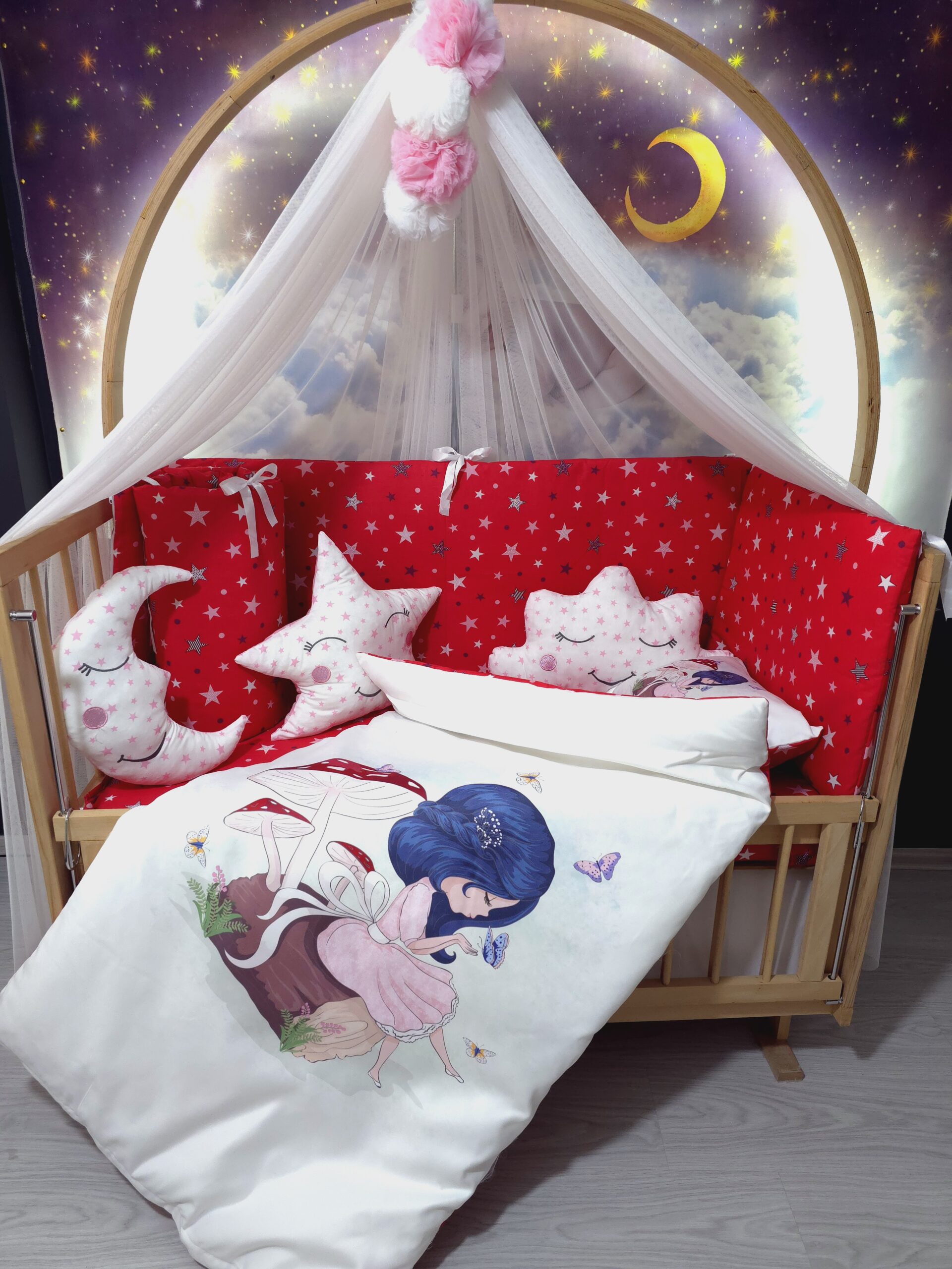 Dijital Baskılı Bebek Beşik Uyku Seti – Kelebek Uçuran Kız