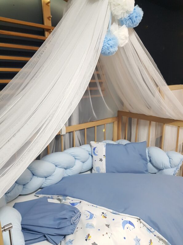60×120 Beşik Örgülü Bebek Uyku Seti – Ponponlu Cibinlik Aparatlı