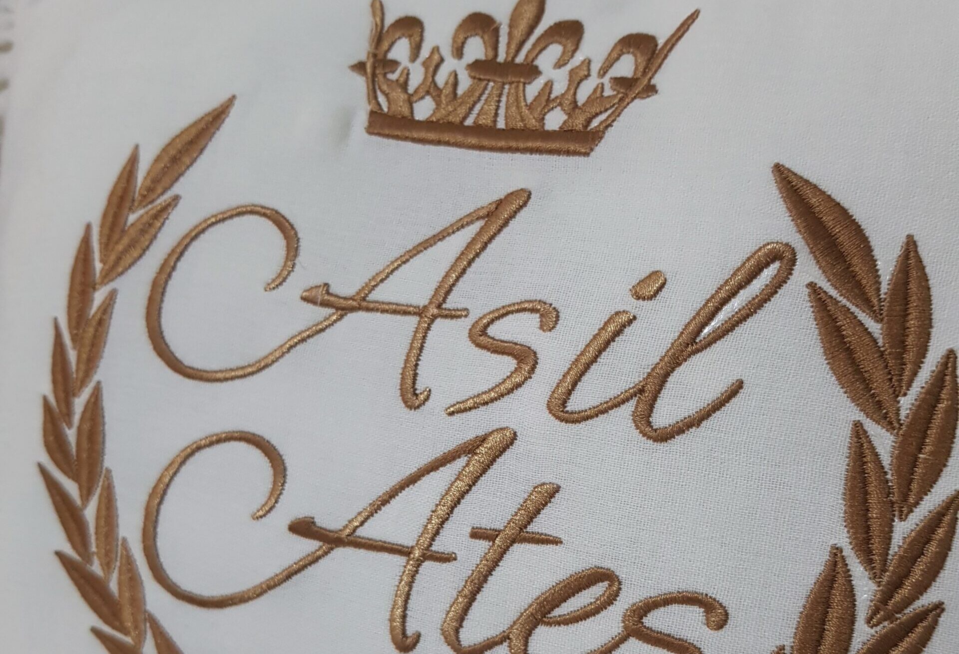 İsim Nakışı: Bebeğinizin ismi sade ve zarif yazı tipiyle işlenir.
