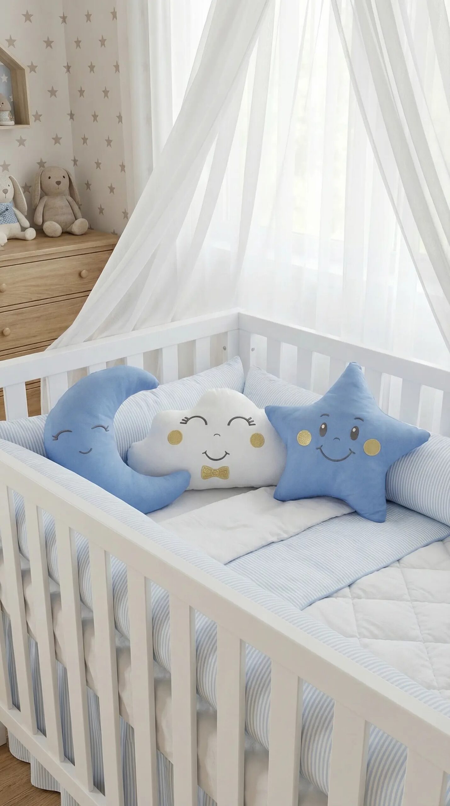 Bu yumuşak ve sevimli yastıklar, 0-5 yaş arası çocukların kendini güvende hissetmesine ve uykuya daha kolay geçmesine yardımcı olur.